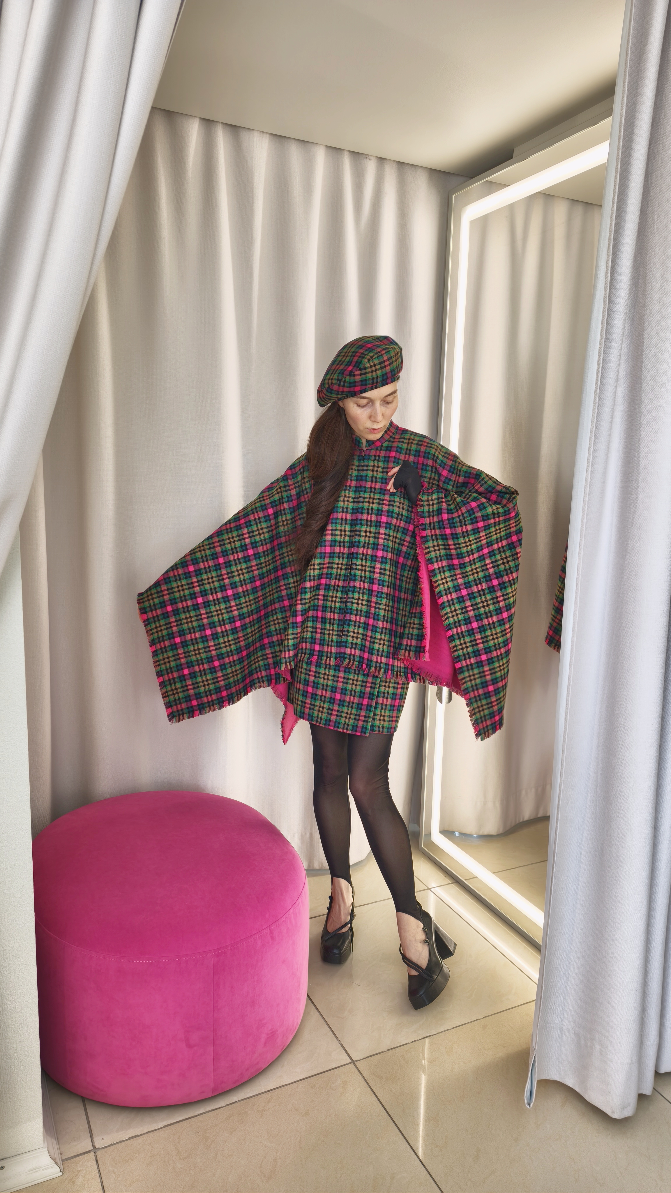 Пончо клетка/фуксия